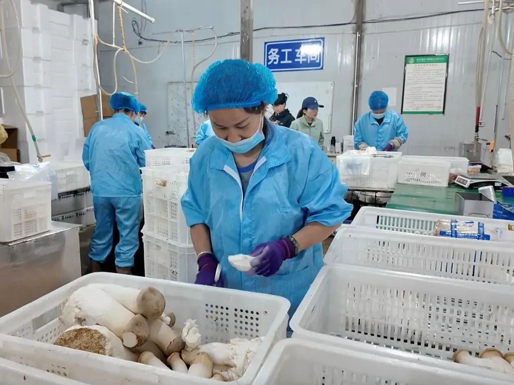 蓬勃发展的食用菌产业还催生出助农增收的联农带农机制。陆良爨乡绿圆菇业有限公司通过流转土地,带动周边600多户农户种植食用菌,每户年均增收1.5万元。“每个月打包分拣食用菌能有4000多元的收入,我很满意。”家住工厂附近的农户朱丽仙说,除了土地租金,周围农户还可以到车间里务工,实现家门口就业。