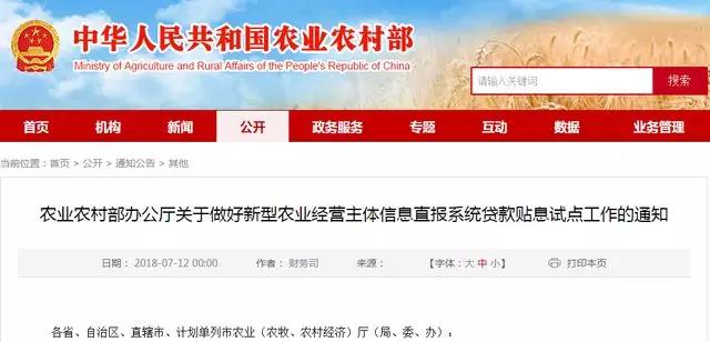 为加快推进新型农业经营主体信息直报系统(以下简称直报系统)应用实施,帮助缓解新型农业经营主体贷款难、贷款贵问题,我部将以直报系统为载体开展贷款贴息试点。现将有关事宜通知如下。