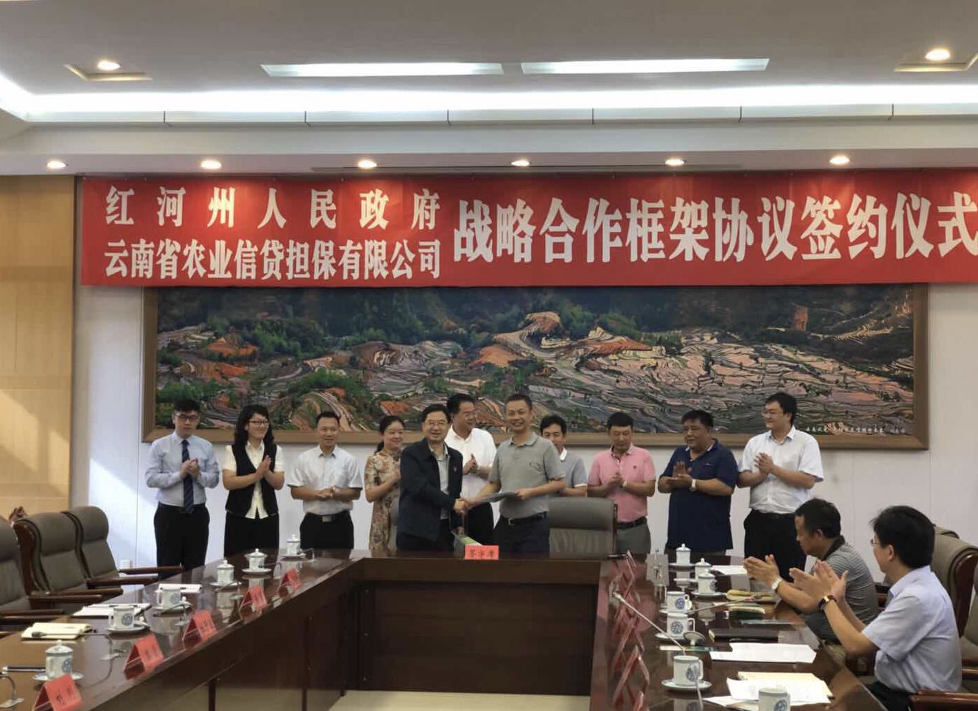 8月21日上午云南省农业信贷担保有限公司与红河州人民政府战略合作协议签订暨公司红河办事处、弥勒办事处授牌仪式在红河州会堂正式举行。州人民政府副州长常斌、公司董事长郭影、总经理杜开波及红河州各相关部门、各银行金融机构及各县市区农业、财政部门参加了会议。