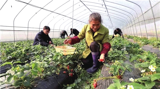 “以前我们的经济收入只能靠种植马铃薯、荞麦、包谷,每年的收入少得可怜,自从政府引进草莓种植,我们不仅有土地流转的租金,还可以到草莓基地去打工,每天有100元的收入,一个月下来也有3000元左右的收入。多亏了政府,让我们不仅可以在家门口打工,还能就近照顾家里,增加收入。”村民高兴莲笑呵呵地说。