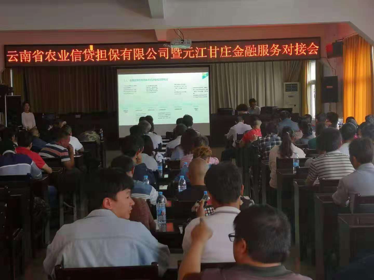 2018年11月8日,玉溪办事处与红塔银行小企业信贷中心、元江县政府、农经站携手举办金融服务对接会。甘庄168户家庭农场、农民合作社、种养大户等新型农业经营主体参加会议。玉溪办事处莽林琦、胡帮露对农业担保政策背景、准入条件、业务流程等进行详细介绍,就参会人员提出的有关反担保条件、保费利率等问题进行解答,并现场接待担保客户。会后,玉溪办事处成员与元江县政府积极对接,就进一步对加强合作、项目推荐、建档立卡、农担政策宣传推介等工作交换意见,对元江甘庄农业经济发展、农担业务规模扩展起到积极助推作用。