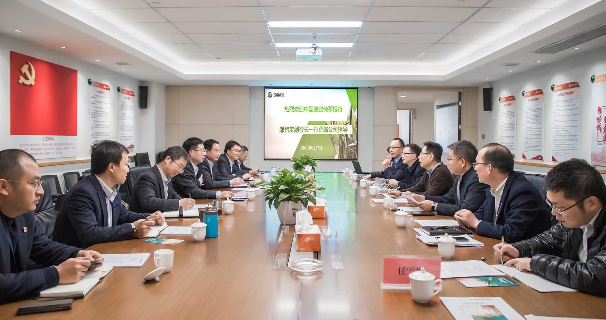 1月7日,中国邮政储蓄银行副行长邵智宝在邮储银行云南省分行唐华建行长陪同下到云南省农担公司调研,双方就加强银担合作进行深入交流座谈。