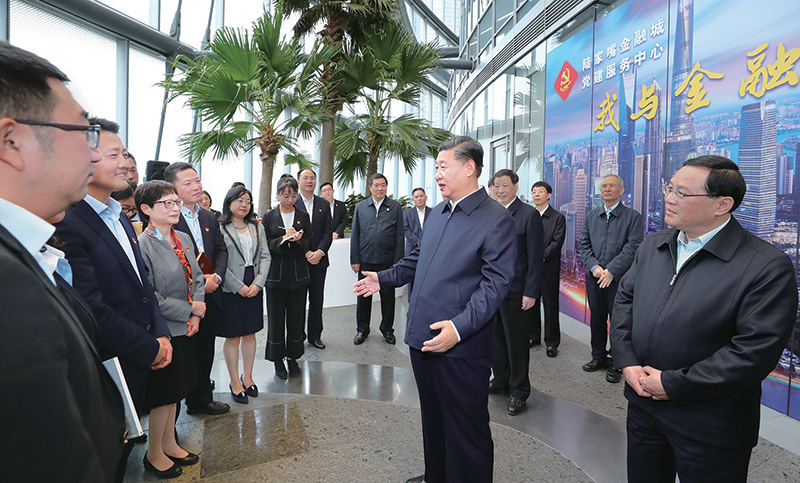 2018年11月6日至7日,中共中央总书记、国家主席、中央军委主席习近平在上海考察。这是6日上午,习近平在上海中心大厦22层的陆家嘴金融城党建服务中心,同正在联合开展主题党日活动的企业党员亲切交谈。