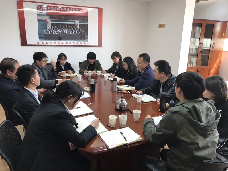 2019年2月12日下午,农担一部负责人刘川率曲靖办事处全体员工赴曲靖会泽长江村镇银行交流学习。曲靖市会泽长江村镇银行副行长马发宽、副行长左儒林、业务部负责人代颖、薛常康、微贷中心负责人蒋红浪、风险管理部负责人饶文艳及办公室负责人谭明秀等出席座谈会。