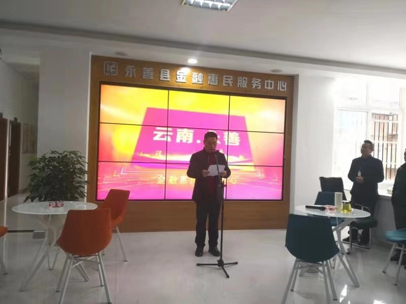2019年2月26日,昭通办事处工作人员到永善县金融惠民服务中心参加揭牌仪式,永善县邓福贵副县长、永善县金融办主任严明惠进行揭牌,金融惠民服务中心主任张文涛主持会议。揭牌仪式后,邓副县长发表讲话,感谢各金融机构的到来与支持,成立金融惠民服务中心旨在为永善县建档立卡户,各专业合作社、各龙头企业、家庭农场主、农户等提供一条龙金融服务,提高服务意识,增强服务效率,助推产业发展。金融惠民服务中心要利用好各家金融机构产品优势,结合农担公司业务担保支持及政府风险金优势,发挥金融力量,帮助实业发展。
