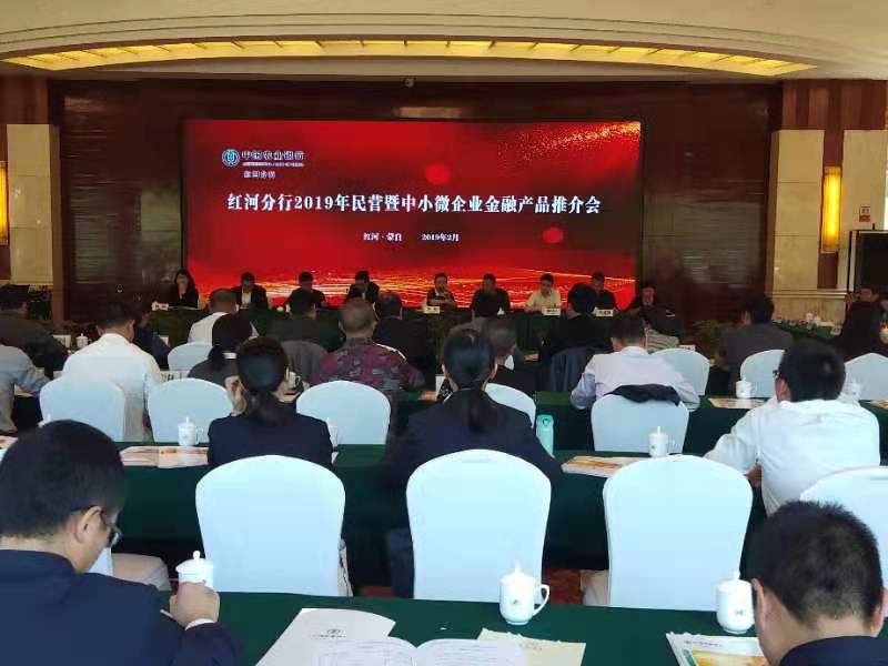 2019年2月26日下午,红河办事处应邀参加了农行红河州分行举办的“2019年民营暨中小微企业金融产品推介会”,参会人员及单位有农行红河州分行行长朱旭鹏、副行长杨增伟、红河银监分局、州人行信贷科、州工商联、州工信委中小企业科、全州35家中小微企业代表、农行各支行副行长及业务骨干。