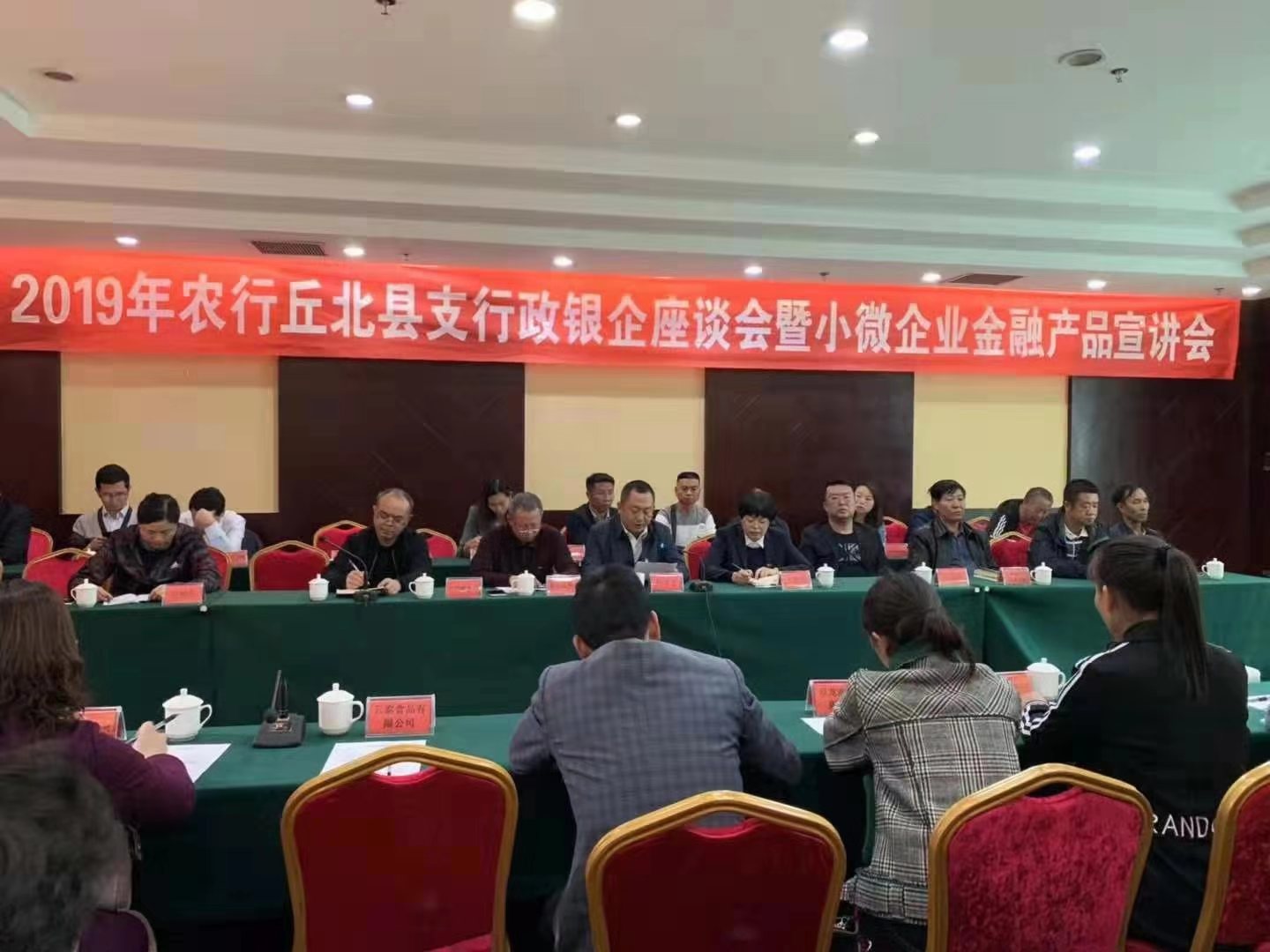 3月1日下午,农担公司文山办事处受邀参加农行丘北县支行举办的2019年丘北县政银企座谈会,参会人员有丘北县副县长杨文才,县人民银行、工信商务局、农科局、金融办等政府职能部门及丘北县部分民营企业、农民专业合作社。