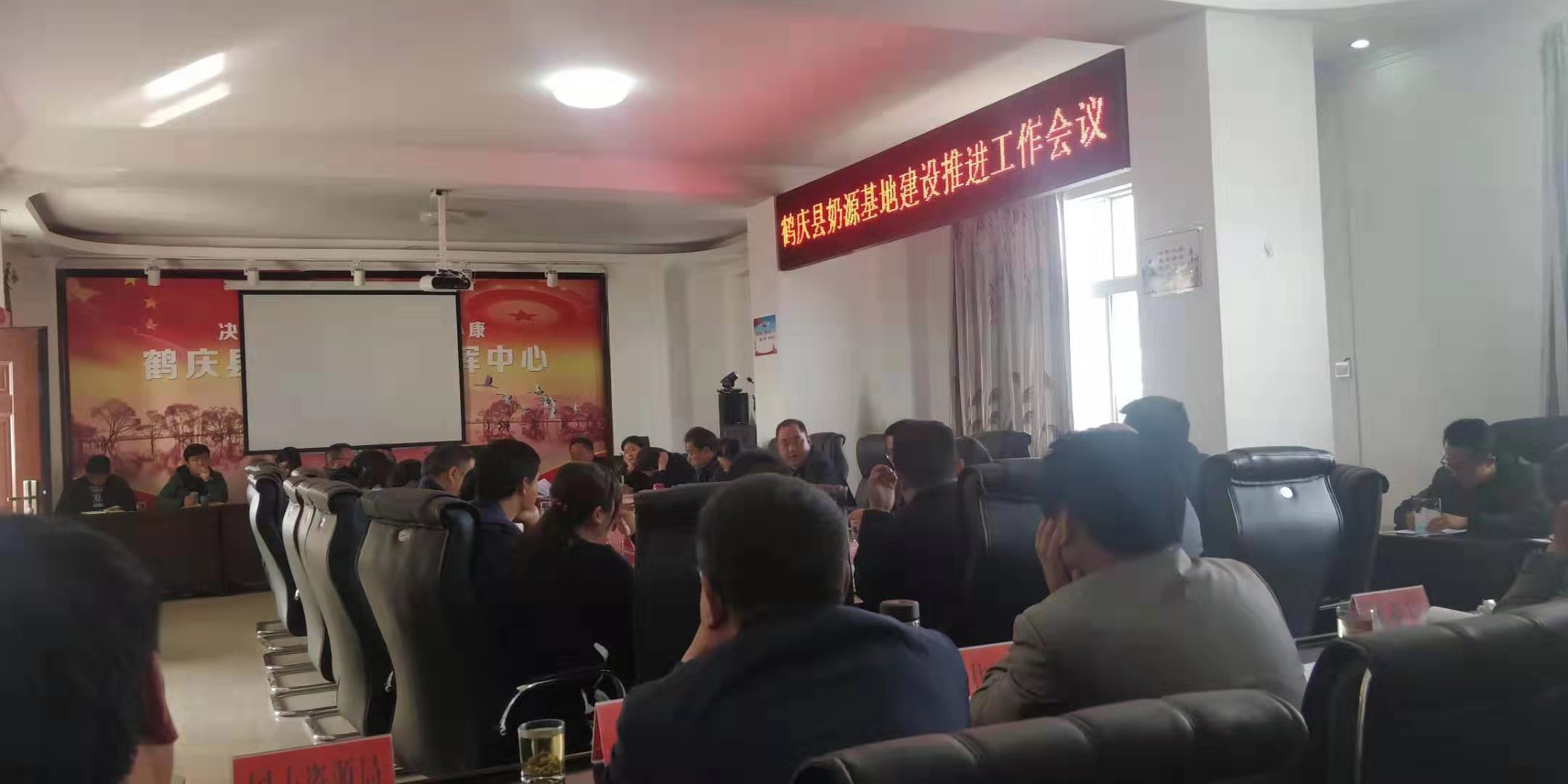 2019年3月8日下午,大理办事处工作人员朱淼、李光、杨紫艳应邀参加鹤庆县奶源基地建设推进工作会议。王剑副县长主持会议、段红丽县长出席并发表讲话,县农业局、林业局、住建局、扶贫办等有关部门,各镇政府和信用社、农行共同参加会议。
