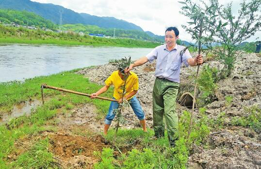 郭彩廷与镇干部在猴桥镇古永河边义务植树