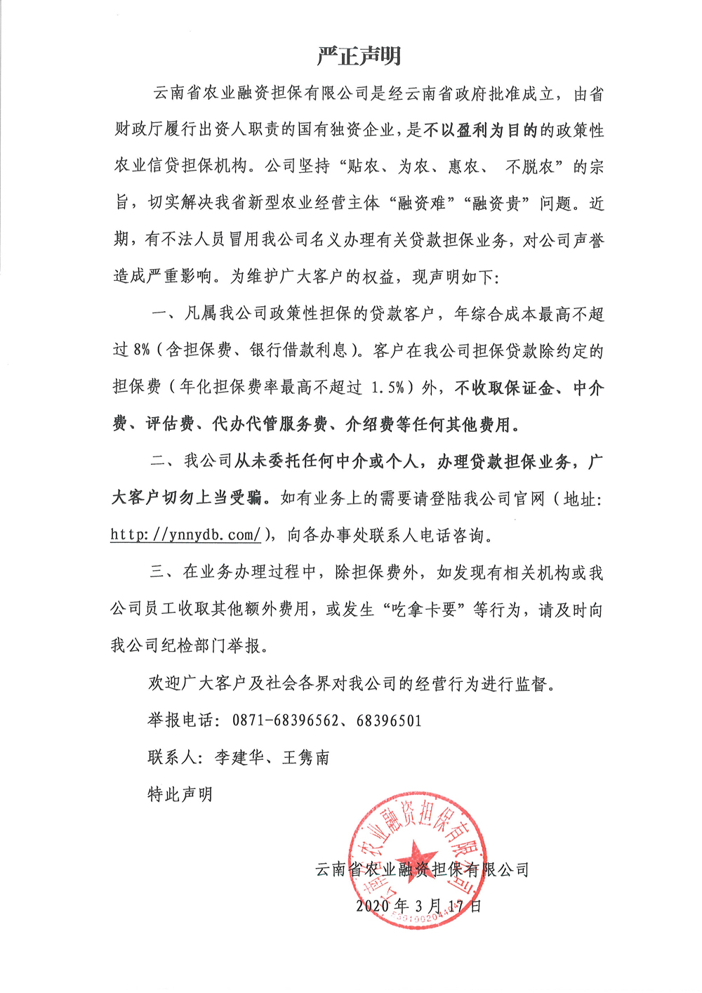 严正声明