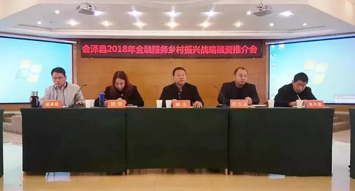 曲靖办事处负责人贾万文携曲靖办事处全体员工代表心博网页版页面登录公司与会泽县政府、人民银行、邮储银行等金融机构,共同出席会泽县2018年金融服务乡村振兴战略融资推介会,并由曲靖办事处王景同志向到会的各农业大户详细讲解农担业务。