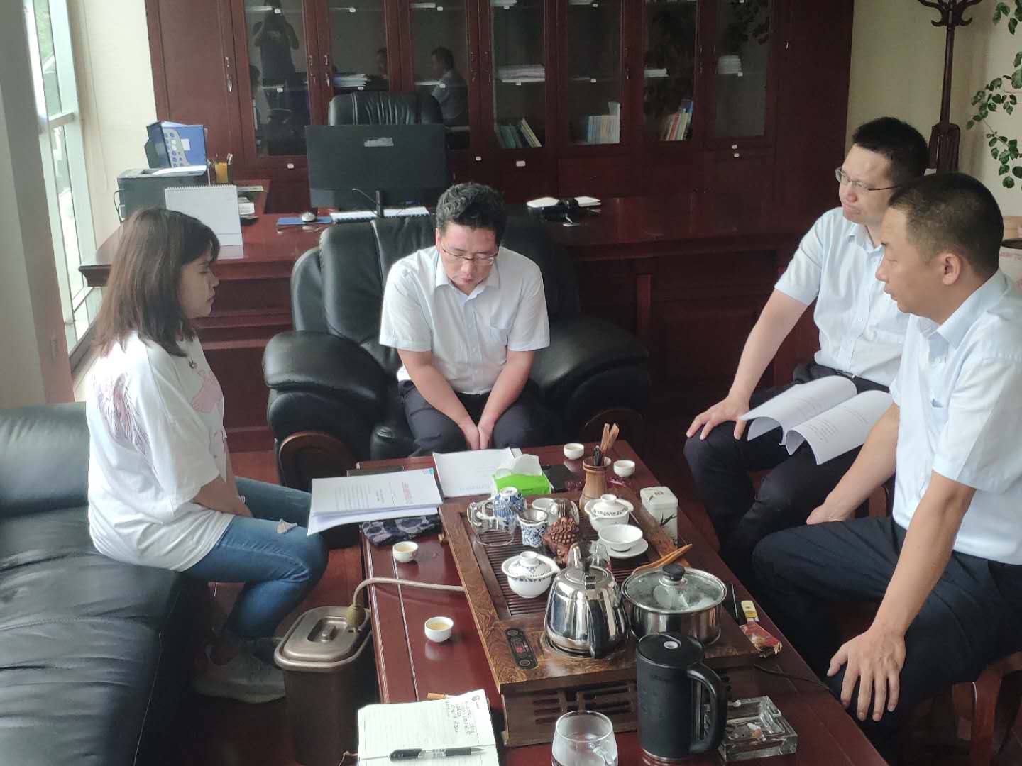 为扩充业务类型,做大业务规模,2020年7月3日,临沧办事处业务主管张丽琴携项目经理杨秋晓前往临沧临翔沪农商村镇银行与董事长陈瑞金、行长杨爱飞、首席风险官严晓东、小微团队主任郭杨云就业务合作进行座谈。