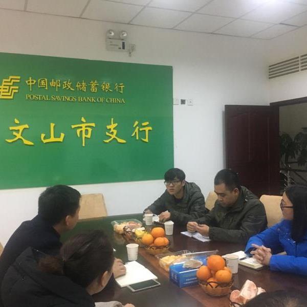 文山办事处全体员工受邀到中国邮政储蓄银行文山市支行进行座谈