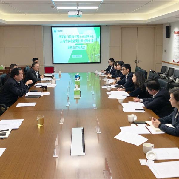 4月6日,心博网页版页面登录与华夏银行昆明分行召开银担合作座谈会。