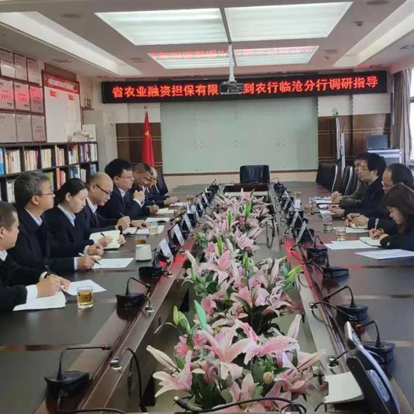 2020年12月15日,董事长郭影、农担一部负责人寸明杰及临沧办事处联合临沧市金融办主任罗廷荣,前往农业银行开展政银担业务座谈。