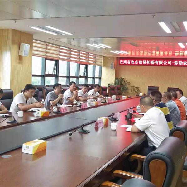 7月30日,董事长郭影携战略发展部负责人蔡菲、农担一部负责人刘川及弥勒办事处全体员工到弥勒农商行开展座谈交流。