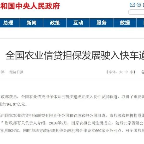 全国农业信贷担保发展驶入快车道