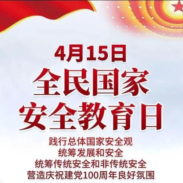 2021年4月15日是第六个全民国家安全教育日,今年的活动主题为“践行总体国家安全观,统筹发展和安全,统筹传统安全和非传统安全,营造庆祝建党100周年良好氛围...