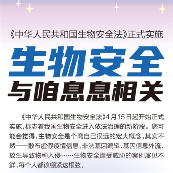 2021年4月15日起,《中华人民共和国生物安全法》开始正式实施